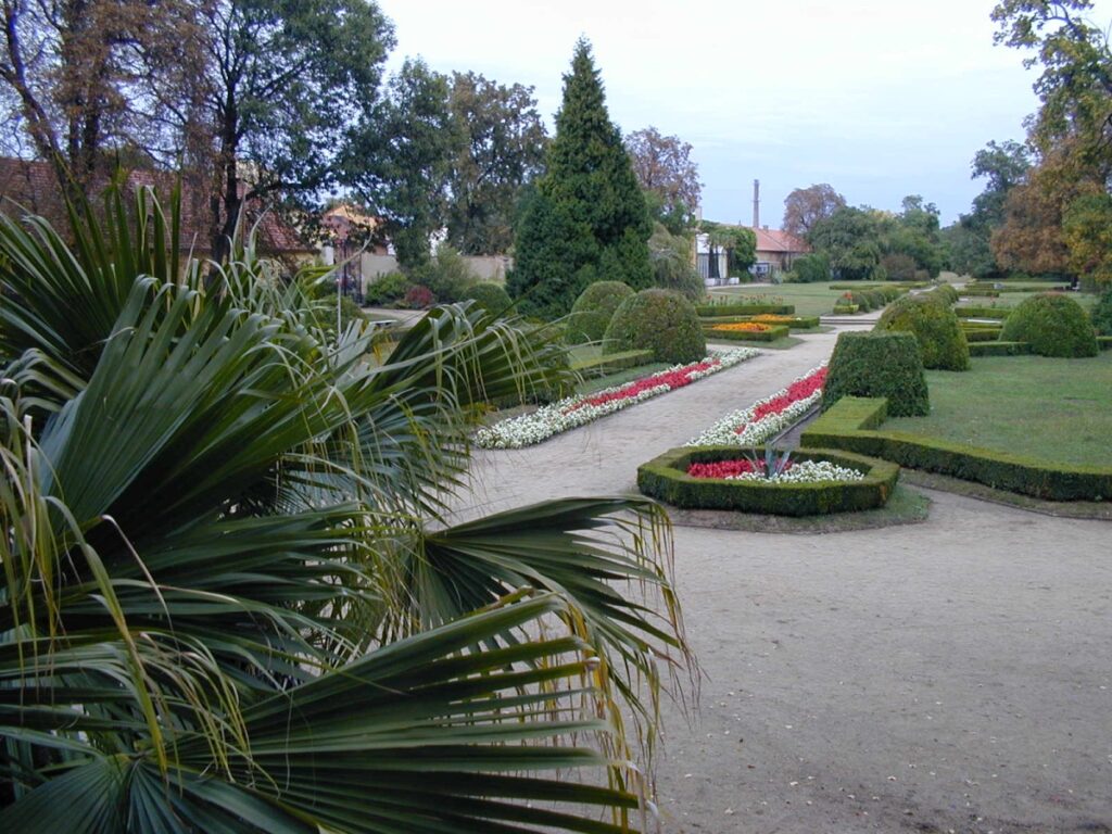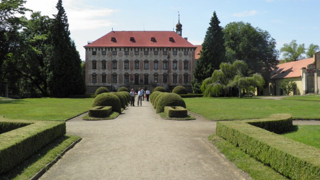 The castle near the square is owned by the state. The first floor of the castle is open to the public, with an extensive collection of wall tapestries and objects from the original owners‘ travels in Asia and Africa. The chateau chapel located on the first floor is interesting. There are occasional tours of the cellars in the basement, where, among other things, the count’s brewery was operated. The castle park covers an area of over 60 hectares. Adjacent to the castle is the French part with flower beds lined with shaped boxwood with several fountain pools. In the English part, the last of the monumental trees survive. During the summer, palm trees from the greenhouses are brought out from under the chateau.