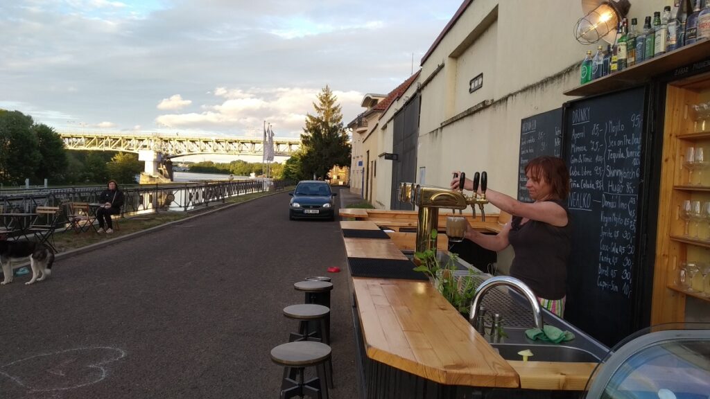 Without complications, you can park for free under the bridge (Labská Street), which will take you to the moored steamer, which also serves as a restaurant.