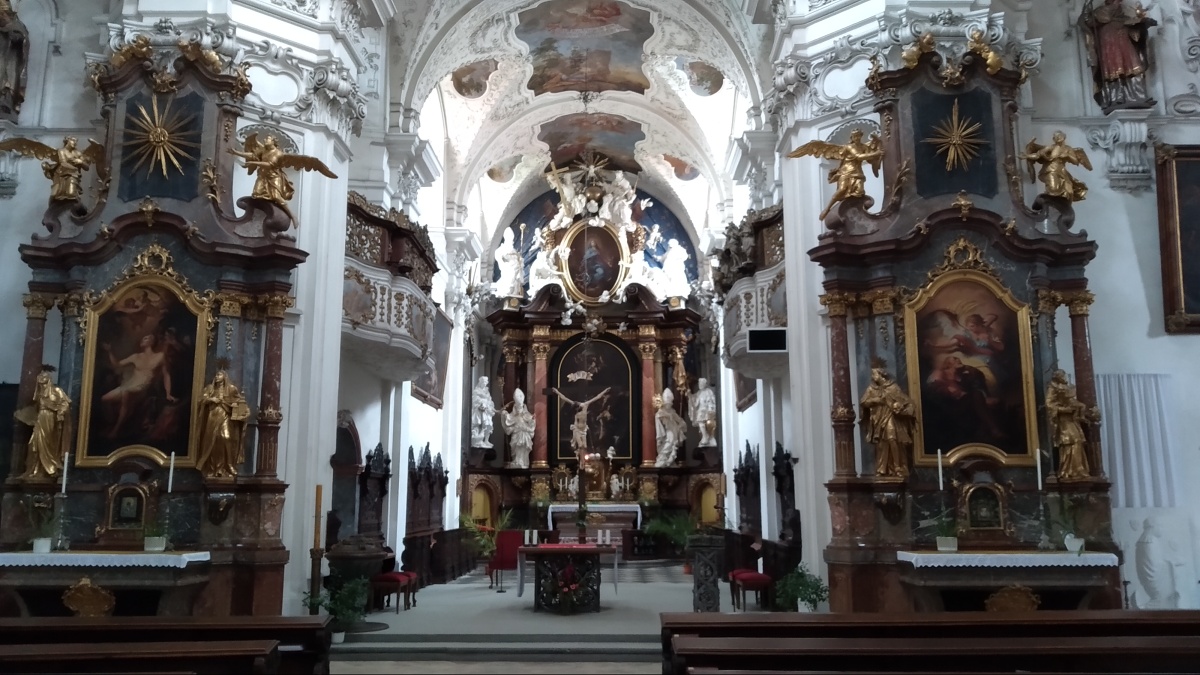 A tour of the huge and richly decorated church also includes a tour of the Romanesque crypt under the church.
