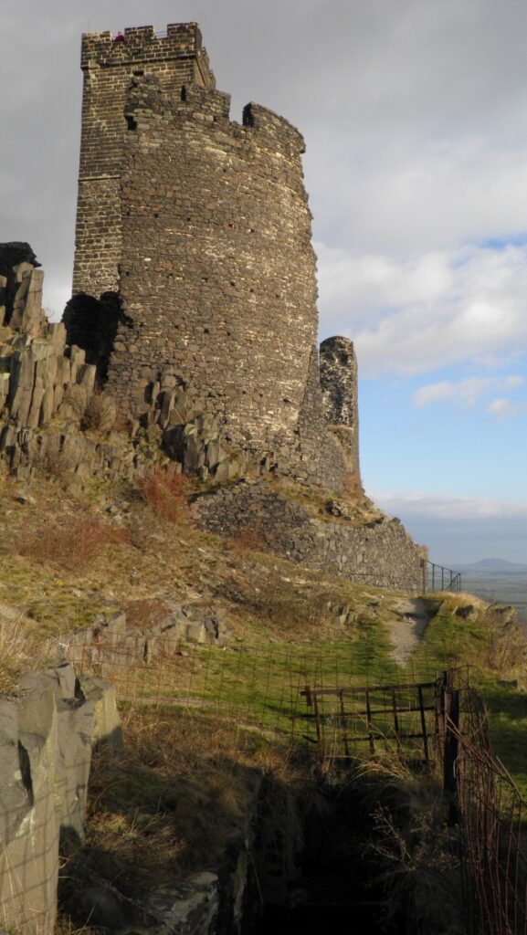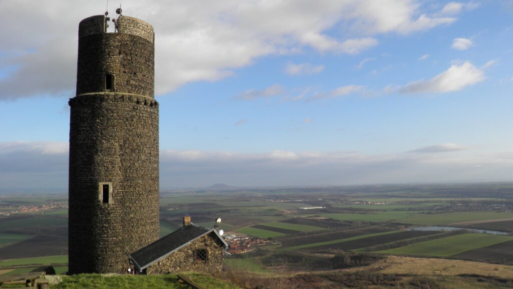 The mountain of volcanic origin rises 300 metres out of the flat landscape from Prague as the first mountain of the Bohemian Central Highlands. On most of the hills of the Central Highlands you will find the ruins of a castle. Hazmburk is one of the largest castles that has never been conquered. The magical place is shrouded in several legends, including treasure, a dragon, a white lady, a cellar apparition,… Although not much of the original building remains, the castle grounds are large and the square „white“ tower, which serves today as a lookout tower, offers an excellent view of the landscape. There is an entrance fee at the entrance to the grounds before the top of the hill. Access is possible from the village of Klapý, where there is a large paid parking lot, as well as from the village of Slatina (small free parking lot). Slatina is one of the still well-preserved villages of a rounded character – you will see this from Hazmburk.