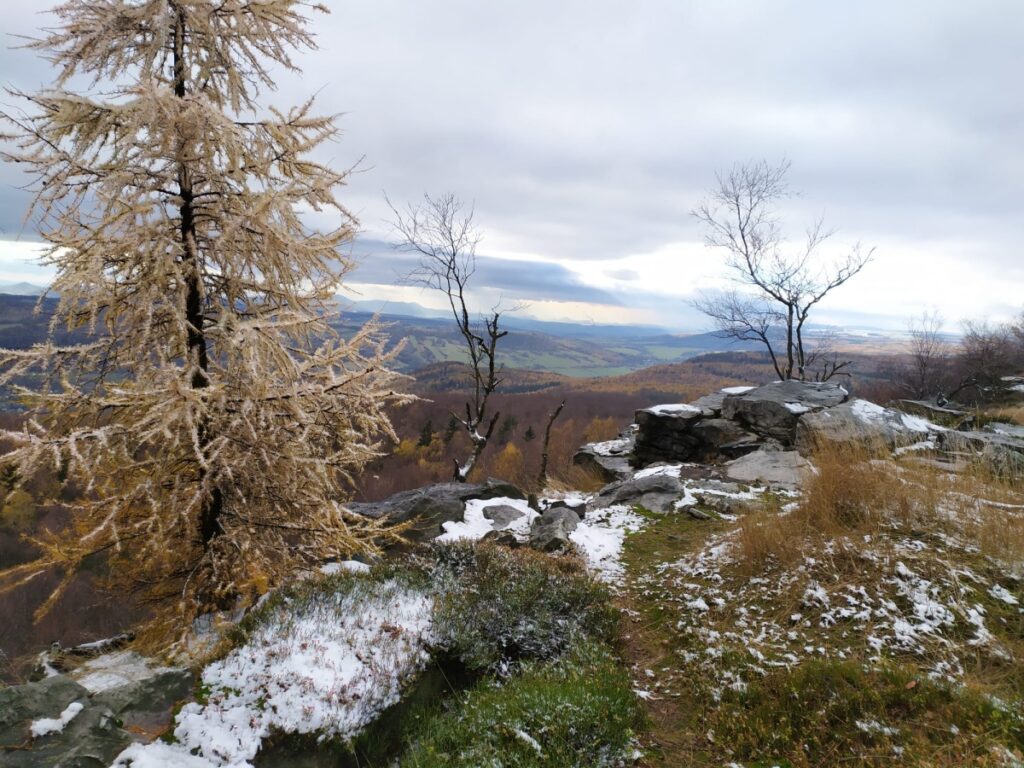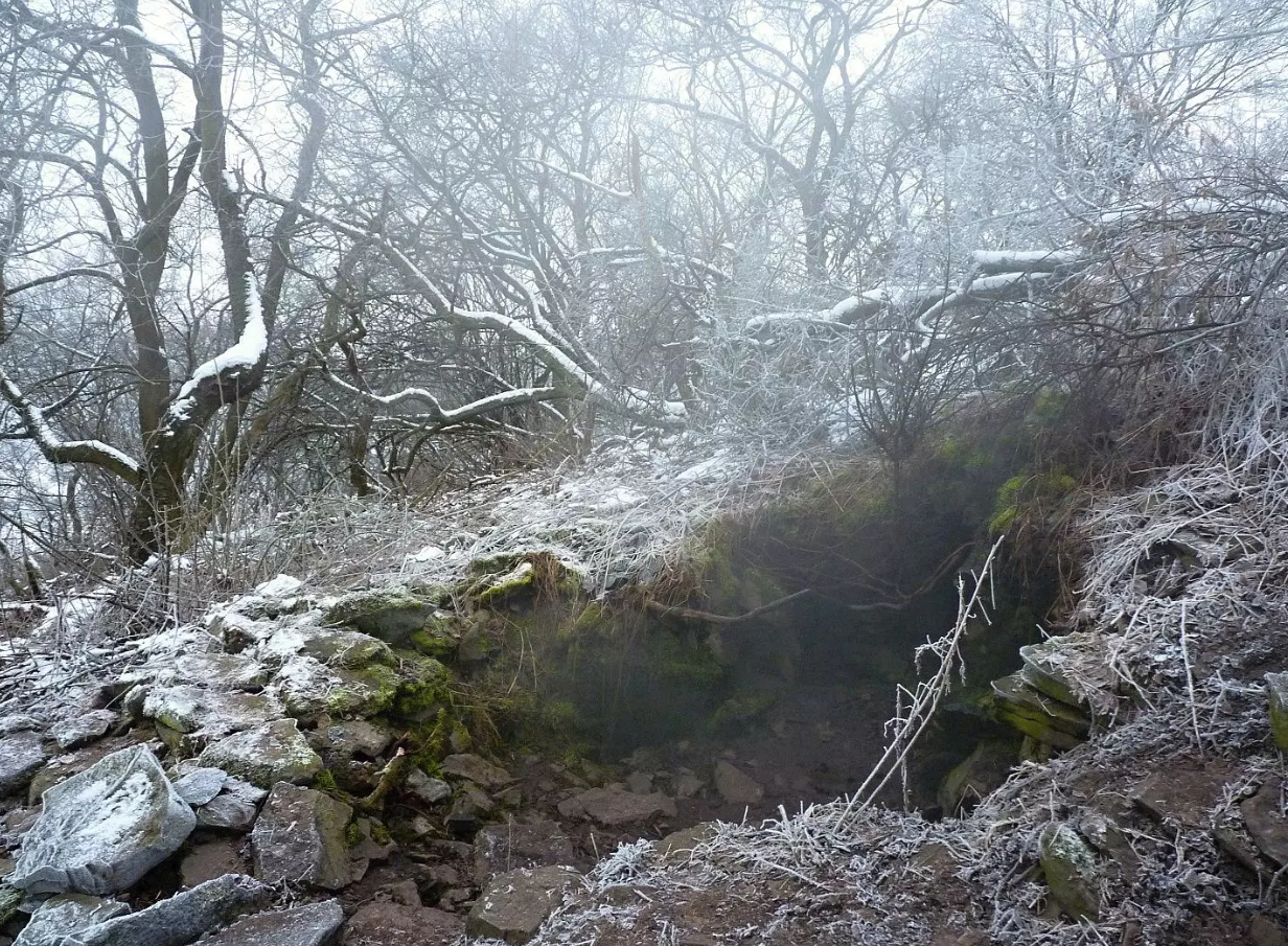 The Boreč hill on the edge of the Bohemian Central Highlands is an interesting geological feature. Inside the hill there are a number of fissures that function as a heat accumulator in summer and make the hill exceptional at the beginning of winter when it starts to freeze. Cold air is sucked into the cracks and when it warms up in the bowels of the hill, warm steam fumes from it. In the crevices of the hill you can sit at 20°C even in freezing weather.