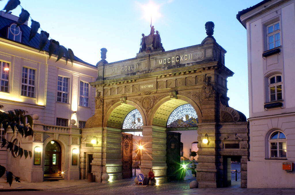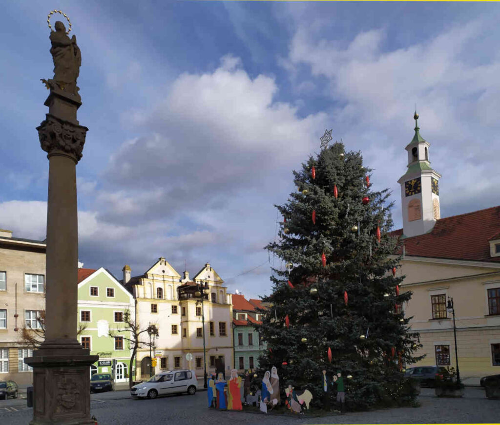 Žatec (a UNESCO-protected monument since 2023) is associated with hops and beer production. The Žatec brewery still operates right on the square! The square is huge. Try the local green „hop lemonade“ in the local restaurants – it’s probably a unique product that you won’t get anywhere else in the world.