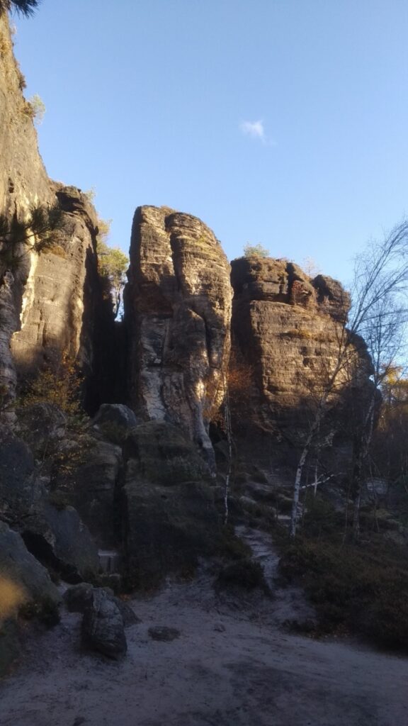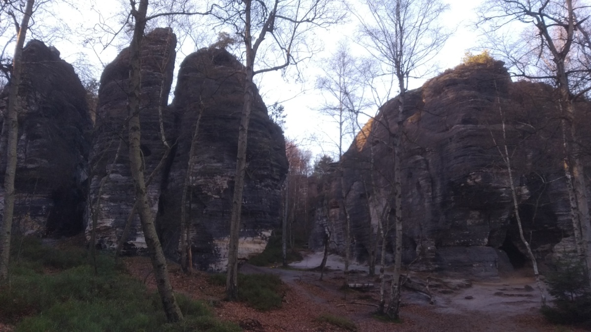 Tourist footpath between sandstone rocks. The film The Chronicles of Narnia was filmed here. (Paid parking in the village, free parking at the other end of the trail.)